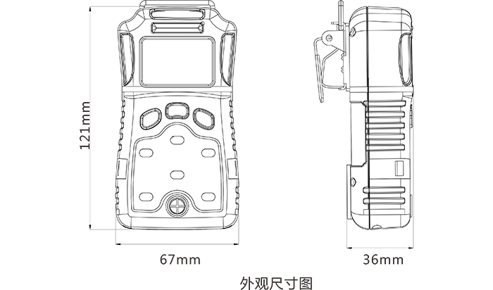 - 屏幕支持单屏显示所有检测气体浓度或大字体显示单一气体浓度 - 可充锂电池,连续工作时间大于12小时(非报警状态) - 探测器带有LED照明功能